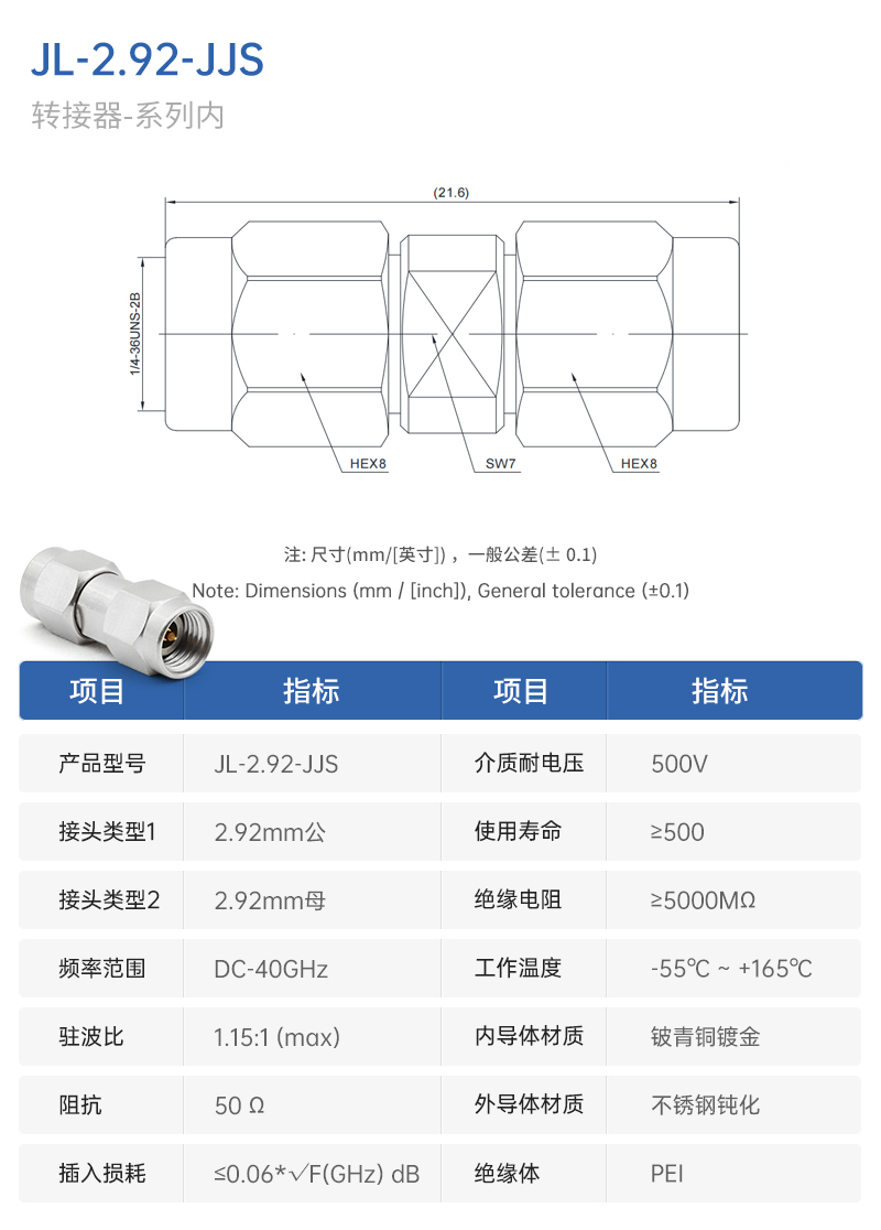 2.92mm金属穿墙式连接器
