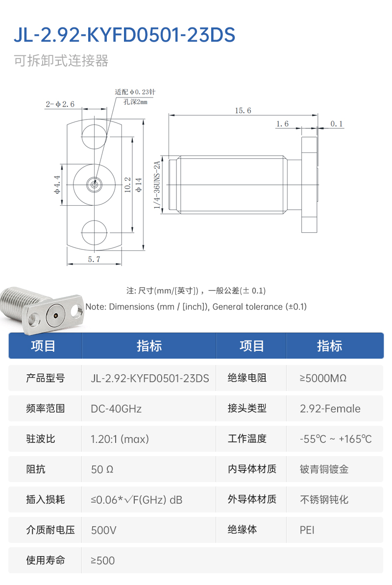2.92mm介质穿墙式连接器